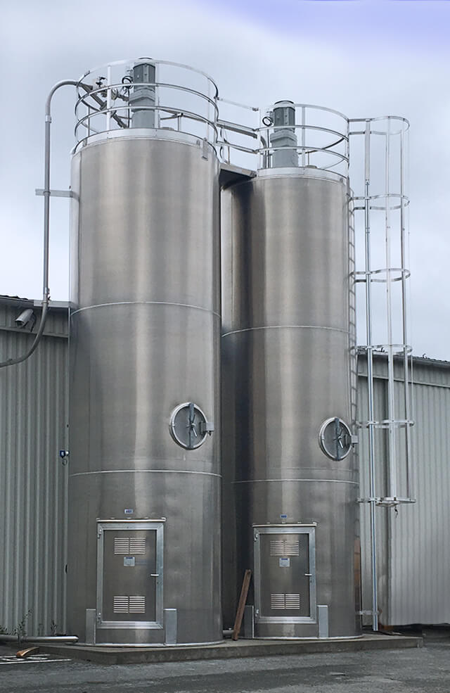 Buitensilo’s worden veelal van aluminium of RVS gemaakt en zorgen er voor dat grote hoeveelheden grondstof buiten opgeslagen kunnen worden. Binnen de verschillende uitvoeringen zijn er ook veel opties mogelijk zoals bordessen, opzuigboxen, lucht ontvochtiging, etc.